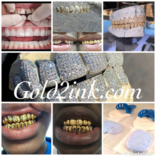 Our products are for cosmetic and entertainment purposes only and should not be used for the replacement of natural teeth or broken fillings. Gold2ink goldGrillz does not perform dental procedures, and we are not taking impressions of your teeth in person. You must purchase a do-it-yourself mold kit from us or have your impression created by a licensed dentist. We will not be held liable for any direct, indirect, incidental, special, or consequential losses or damages arising from the use of our products.# If you decide to wear custom gold grillz, then use special care with dental hygiene. Brush and floss regularly to prevent problems. Make sure your teeth are clean before you put on the grillz because tiny bits of food and debris could lead to cavities, tooth decay, and bad breath.How to clean my grills:Simply start by gently brushing away any dirt and grime build-up using warm water. Then soak your grillz in a glass filled with mouthwash. Allow your grillz to soak for at least 5-10 minutes. Remove your grillz from the solution and rinse them off with warm water and pat them dry with a clean, soft cloth.